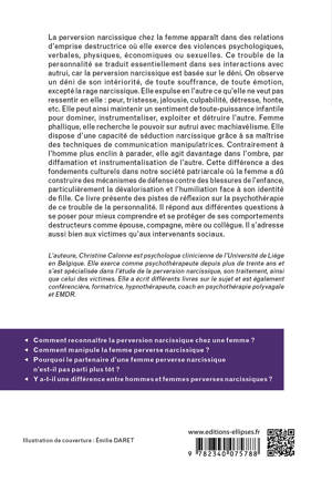 Ce livre présente des pistes de réflexion sur la psychothérapie de ce trouble de la personnalité. Il répond aux différentes questions à se poser pour mieux comprendre et se protéger de ses comportements destructeurs comme épouse, compagne, mère ou collègue. Il s’adresse aussi bien aux victimes qu’aux intervenants sociaux.