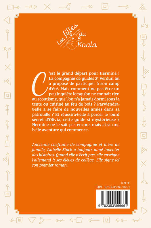 C'est le grand départ pour Hermine ! La compagnie de guides 2èmeVerdun lui a proposé de participer à son camp d'été et elle a accepté... Mais comment ne pas être un peu inquiète lorsqu'on ne connaît rien au scoutisme, que l'on n'a jamais dormi sous la tente ou cuisiné sur un feu ? Comment sont les filles de sa nouvelle patrouille ? Et qui est cette Olivia si secrète ? Hermine ne le sait pas encore, mais c'est une belle aventure qui commence... A propos de l'auteur : Ancienne cheftaine de compagnie et mère de famille, Isabelle Stock a toujours aimé inventer des histoires. Quand elle n'écrit pas, elle aime enseigner l'allemand à ses élèves de collège ! Elle signe ici son premier roman.