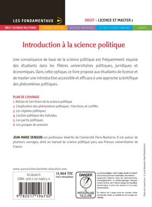 Plan de l’ouvrage : 1. Notion et territoire de la science politique. 2. L’explication des phénomènes politiques : fonctions et conflits. 3. Les régimes politiques. 4. L’action politique des individus. 5. Les partis politiques. 6. Les groupes de pression.