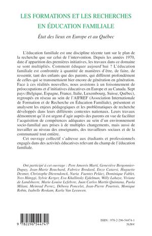 Comment éduquer aujourd'hui ? L'éducation familiale est confrontée à quantité de manières d'être, de faire, de ressentir, qui diffèrent de celles qui se transmettaient hier encore de génération en génération. Face à ces réalités nouvelles, nous assistons à un foisonnement d'initiatives éducatives en Europe et au Canada. Sept pays regroupés au sein de l'AIFREF présentent et analysent les enjeux pédagogiques et les problématiques de recherche développés dans leurs différents contextes nationaux.
