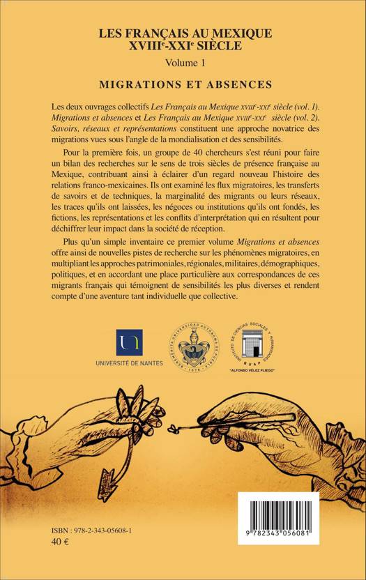 Quarante chercheurs dressent un bilan sur le sens de trois siècles de présence française au Mexique. Flux migratoires, transferts de savoirs et techniques, marginalité des migrants ou leurs réseaux, leurs traces, négoces, institutions ; fictions, représentations et conflits d'interprétations -plus qu'un simple inventaire, ce volume questionne le phénomène migratoire, multiplie les approches patrimoniales, régionales, militaires, démographiques et politiques, témoins d'une aventure tant individuelle que collective.