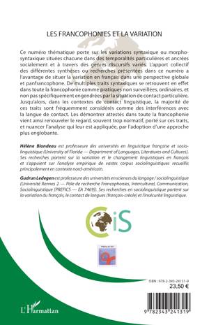 Ce numéro thématique porte sur les variations syntaxique ou morpho-syntaxique situées chacune dans des temporalités particulières et ancrées socialement et à travers des genres discursifs variés. L’apport collectif des différentes synthèses ou recherches présentées dans ce numéro a l’avantage de situer la variation en français dans une perspective globale et panfrancophone. De multiples traits syntaxiques se retrouvent en effet dans toute la francophonie comme pratiques non surveillées, ordinaires, et non pas spécifiquement engendrées par la situation de contact particulière. Jusqu’alors, dans les contextes de contact linguistique, la majorité de ces traits sont fréquemment considérés comme des interférences avec la langue de contact. Les démontrer attestés dans toute la francophonie vient ainsi renouveler le regard, souvent trop normatif, porté sur ces traits, et nuancer l’analyse qui leur est appliquée, par l’adoption d’une approche plus englobante.