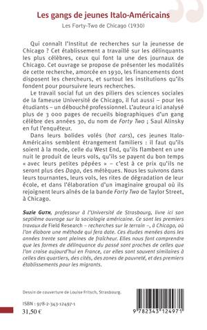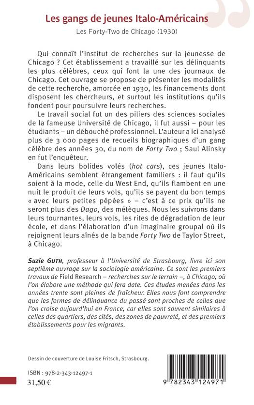 La ville de Chicago a recensé les délinquants ayant fait la une des journaux locaux. L'ouvrage condense et analyse plus de 3000 pages de recueils biographiques du célèbre gang du Chicago des années 30, le "Forty-two". Entre tournantes, vols et rites de dégradation de leur école, l'auteur retrace leurs parcours dans l'élaboration d'un imaginaire groupal.