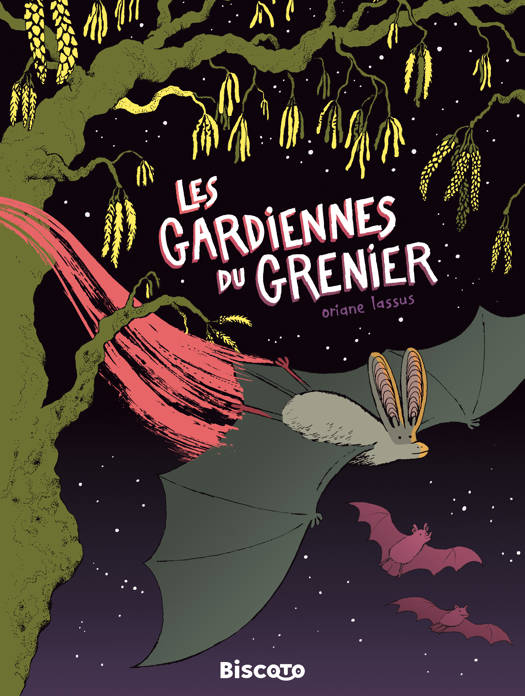 Plecota, une petite chauve-souris, vit paisiblement avec sa famille dans un grenier douillet... Mais l’hiver arrive. Toute la colonie s’envole pour rejoindre son refuge d’hibernation, Plecota se perd. Séparée des siens, elle est recueillie par de sympathiques musaraignes puis par les humains qui vivent dans son ancienne maison. Ce nouveau refuge est soudain menacé par la construction d’une route pour les gros camions ! Loin de sa famille et malgré sa petite taille, elle va devoir mener un dur combat et chercher du renfort autour d’elle. ———— Oriane Lassus a régulièrement travaillé pour le journal Biscoto. Une bande dessinée, Le Meilleurissime Repaire de la Terre, a déjà été publiée en 2017 (sélection Fauve Jeunesse du FIBD en 2018). Elle est aussi autrice pour le public adulte (chez Arbitraire et la Collection RVB). Avec Les Gardiennes du Grenier, elle nous embarque dans une folle aventure tout aussi rocambolesque que colorée, teintée de questions écologiques. Oriane Lassus nous fait découvrir le monde à travers le regard d’une jeune chauve-souris à la fois sensible et amusante. Un aspect documentaire est doucement distillé, on découvre au fil des pages le mode de vie des petits animaux de la campagne. Différentes espèces, et même les humains, s’unissent pour défendre une cause commmune. Une entraide étonnante entre voisins que tout devrait opposer.