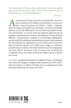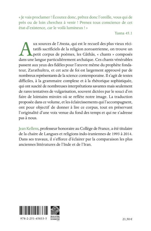 Aux sources de l’Avesta, qui est le recueil des plus vieux récitatifs sacrificiels de la religion zoroastrienne, on trouve un petit corpus de poèmes, les Gâthâs, « chants » composés dans une langue particulièrement archaïque. Ces chants vénérables passent aux yeux des fidèles pour l’oeuvre même du prophète fondateur, Zarathuštra, et cet acte de foi est largement approuvé par de nombreux représentants de la science contemporaine. Il s’agit de textes difficiles, à la grammaire complexe et à la rhétorique sophistiquée, qui ont suscité de nombreuses interprétations savantes mais seulement de rares tentatives de vulgarisation, souvent dictées par le souci d’en faire de lointains miroirs où se reflète notre image. La traduction proposée dans ce volume, et les éclaircissements qui l’accompagnent, ont pour objectif de donner à lire ce corpus, tout en préservant l’originalité d’une voix venue du fond des temps et qui ne s’adresse pas à nous.