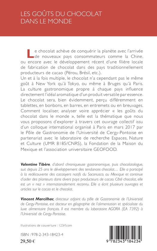 Un et à la fois multiple, le chocolat n'a cependant pas le même goût à New York qu'à Tokyo, ou même à Bruges qu'à Paris. La culture gastronomique propre à chaque pays influence directement l'idéal aromatique d'un produit versatile par essence. Le chocolat sera, bien évidemment, perçu différemment en tablettes, en bonbons, en barres, en entremets ou en breuvages. Comment localiser, analyser voire apprécier « les goûts du chocolat dans le monde ». Telle est la thématique que nous vous proposons d'explorer à travers cet ouvrage collectif.