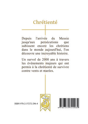 La chrétienté désigne l'ensemble des peuples chrétiens. Nous vous invitons au survol de leur histoire, en relevant les grandes dates qui leur ont permis de survivre contre vents et marées. Un complément d'histoire souvent occulté, autant qu'une source de nombreux sujets de débats : Le Messie , saint Paul, les premiers martyrs, sous l'empire romain, Constantin, Attila, Clovis, le duc d'Aquitaine, Poitiers 732, Charlemagne, La Russie de Kiev, Jérusalem, les croisades, les cathares, le roi de France, le siège de Belgrade, la prise de Grenade, Soliman le magnifique, La bataille de Lépante, la délivrance de Vienne, la Vendée, les Cristeros, l'Alcazar, Maaloula...