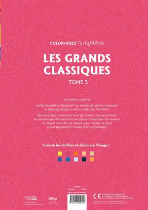 Découvrez à nouveau dans ce troisième tome des Grands Classiques Disney les personnages des chefs d'oeuvre Disney ! Grâce aux codes couleurs, démêlez les entrelacs des lignes, appliquez chaque nuance dans la zone correspondante et révélez la scène représentée.