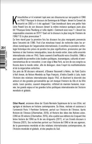 L’ONU est souvent vue comme une grande bureaucratie inefficace, un « machin » ainsi que la qualifiait le général de Gaulle en 1960... Mais ce livre entend montrer que l’ONU, c’est aussi la plus grande tribune mondiale, la « voix du monde », avec son Assemblée générale où les 193 Etats membres sont représentés, et où les grands leaders politique du monde peuvent s’exprimer devant tous les représentants des Etats membres. C’est la plus grande enceinte internationale, la porte-voix des peuples. Cette Assemblée générale, l’enceinte mondiale la plus démocratique puisque chaque Etat, riche ou pauvre, y est doté d’une voix, constitue un formidable forum pour les grands dirigeants, et elle a, au fil de l’histoire, permis à des personnages historiques de prononcer des discours marquants, qui ont eu un impact déterminant sur les relations internationales : guerre froide, conflit israélo-palestinien, attentats du 11 septembre 2001... Ce livre mettra en lumière l’importance de ce forum mondial, en présentant pour la première fois une sélection des grands discours prononcés dans l’enceinte de l’ONU. En effet, cette organisation internationale, universelle, a accueilli des hommes et femmes politiques et personnalités célèbres, du dirigeant soviétique Khrouchtchev qui, lors de son discours en 1960, n’a pas hésité à taper sur la table avec ses chaussures, à Dominique de Villepin en 2003 dans son flamboyant plaidoyer contre la guerre en Irak, ou encore de Fidel Castro qui a fait en 1960 le plus long discours de l’histoire de l’ONU (d’une durée de 4h30 sans pause!) au leader palestinien Yasser Arafat en 1974, ou encore au pape François prononçant un émouvant discours à l’ONU en 2015, et jusqu’à la jeune Greta Thunberg, égérie des militants pro-climat, en 2019. Les discours seront sélectionnés en fonction de l’importance internationale des orateurs, et de l’impact qu’ils ont exercé dans les médias et sur les relations internationales. Ce ne sera pas un simple recueil de discours : chaque discours sera précédé d’un paragraphe introductif, présentant le contexte historique, le personnage, analysant des passages précis de chaque discours, et sera suivi d’un ou deux paragraphes d’analyse, examinant la portée, les répercussions de ces mots prononcés dans l’enceinte onusienne. Caractère novateur du livre : Un tel recueil commenté des discours prononcés à l’ONU n’a jamais été fait, et cette manière originale d’aborder l’histoire des Nations unies intéressera le public, car elle est vivante et centrée sur des personnages, elle a donc une dimension humaine, elle humanise cette institution internationale. Public visé : Ce livre intéressera tout d’abord le grand public amateur d’histoire et de relations internationales, car il permettra de revisiter toute l’histoire du XXe siècle, en rappelant les grands discours qui ont marqué la mémoire collective. De plus, il pourra être très utile aux professeurs et étudiants d’histoire, de science politique, aux élèves de lycée, des classes préparatoires littéraires aussi bien que commerciales, ainsi qu’aux étudiants et enseignants de Sciences Po.