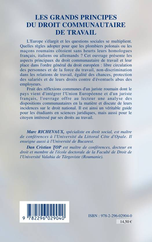 L'Europe s'élargit et les questions sociales se multiplient. Quelles règles adopter pour que les plombiers polonais ou les maçons roumains côtoient sans heurts leurs homologues français, italiens ou allemands ? Cet ouvrage présente les aspects principaux du droit communautaire du travail et leur place dans l'ordre général du droit européen : libre circulation des personnes et de la force de travail, non-discrimination dans les relations de travail, égalité des chances, protection des salariés et de leurs droits contre d'éventuels abus des employeurs.