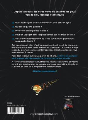 À travers de nombreuses illustrations, les mascottes Una et Paddy seront vos guides pour ce voyage qui vous permettra d’explorer l’Univers en près de 100 questions passionnantes.