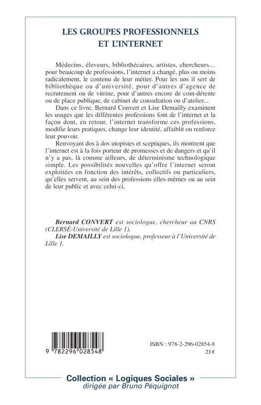 Pour beaucoup de professions, l'internet a changé, plus ou moins radicalement, le contenu de leur métier. Pour les uns il sert de bibliothèque ou d'université, pour d'autres d'agence de recrutement ou de vitrine. Les auteurs examinent les usages que les différentes professions font de l'internet, notamment dans le domaine de la santé, et la façon dont, en retour, l'internet transforme ces professions, modifie leurs pratiques.
