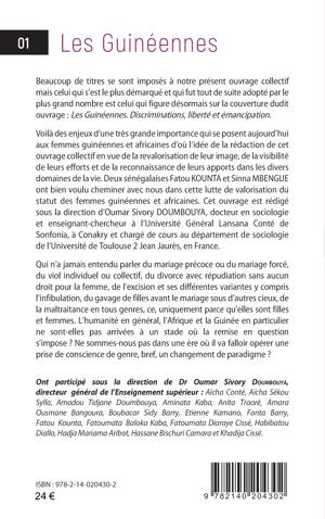 Les Guinéennes. Discriminations, liberté et émancipation : voilà des enjeux d’une très grande importance qui se posent aujourd’hui aux femmes guinéennes et africaines d’où l’idée de la rédaction de cet ouvrage collectif en vue de la revalorisation de leur image, de la visibilité de leurs efforts et de la reconnaissance de leurs apports dans les divers domaines de la vie. Qui n’a jamais entendu parler du mariage précoce ou du mariage forcé, du viol individuel ou collectif, du divorce avec répudiation sans aucun droit pour la femme, de l’excision et ses différentes variantes y compris l’infibulation, du gavage de filles avant le mariage sous d’autres cieux, de la maltraitance en tous genres, ce, uniquement parce qu’elles sont filles et femmes. L’humanité en général, l’Afrique et la Guinée en particulier ne sont-elles pas arrivées à un stade où la remise en question s’impose ? Ne sommes-nous pas dans une ère où il va falloir opérer une prise de conscience de genre, bref, un changement de paradigme ?