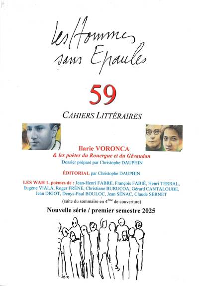 Éditorial : « Permis de séjour, de Bucarest au pays des Causses », par Christophe DAUPHIN / Ainsi furent les Wah 1 : Poèmes de Christophe DAUPHIN, Jean-Henri FABRE, François FABIE, Henri TERRAL, Eugène VIALA, Roger FRENE, Christiane BURUCOA, Gérard CANTALOUBE, Jean DIGOT, Denys-Paul BOULOC, Georges et Jean SUBERVIE, Jean SENAC, Claude SERNET / Dossier : « Ilarie VORONCA & les poètes du Rouergue », par Christophe DAUPHIN / Ainsi furent les Wah 2 : Poèmes de Marie-Claire BANCQUART, Bernard NOËL, Louis ALDEBERT, Christian DA SILVA, Anne-Marie BERNAD, Marcel CHINONIS, François LAUR, Bernard FOURNIER, Francis COMBES, Christian VIGUIE, Monique W. LABIDOIRE, Jean-Claude TARDIF, Benjamin GUERIN, Béatrice PAILLER, Anne BARBUSSE, Sacha ZAMKA / Souvenirs de la maison des fous (prose) : « ARTAUD à Rodez », suivi de « Paul ELUARD en Lozère », par Christophe DAUPHIN / Les pages libres des Hommes sans Épaules : Poèmes de Christophe DAUPHIN, Alain BRETON, Paul FARELLIER / Avec la moelle des arbres : Notes de lecture de : Christophe DAUPHIN, Pierrick de CHERMONT, Odile COHEN-ABBAS / Infos / Échos des HSE : avec des textes de Christophe DAUPHIN, Madeleine RIFFAUD, Jean ROUSSELOT, Alain BRETON, Marie-Josée CHRISTIEN, Gyula ILLYES, Karel HADEK, Alexandre VOISARD, Jean-Luc MAXENCE, Odile COHEN-ABBAS, César BIRÈNE, André BRETON, Sarane ALEXANDRIAN, Daniel ABEL, Boualem SANSAL, Pierre DE RONSARD, Joaquim DU BELLAY