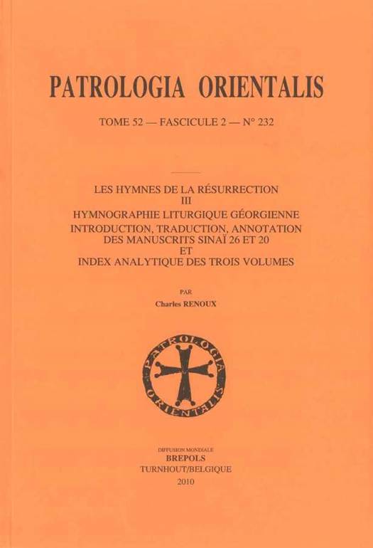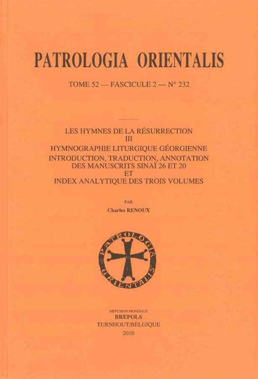 Les Hymnes de la Résurrection III. Hymnographie liturgique géorgienne. Introduction, traduction, annotation des manuscrits Sinaï 26 et 20 et index analytique des trois volumes