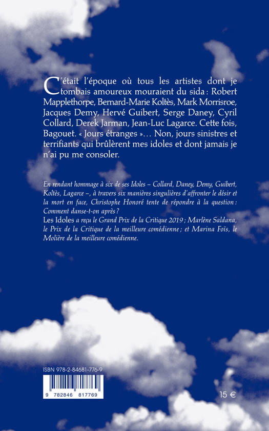 Christophe Honoré revient sur une autre génération d’artistes, celle d’avant lui, celle des années 1980-1990. Ce n’est pas exactement une génération, encore moins un mouvement, mais des vies d’artistes ou d’auteurs qui ont en commun une époque, la France des années Mitterrand, et une maladie, le sida. Les Idoles revient sur six artistes majeurs, sur leurs œuvres et leurs vies, sur ce qui fut leur façon, à chacun différente, de traverser la maladie et d’attendre la mort – fantômes contemporains pour parler d’aujourd’hui. Les Idoles met en scène Jean-Luc Lagarce, Bernard-Marie Koltès, Hervé Guibert, Serge Daney, Cyril Collard et Jacques Demy, interprétés par des comédiens indifféremment masculins ou féminins.