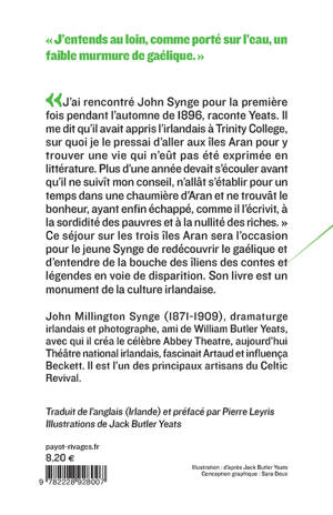 "J'ai rencontré John Synge pour la première fois pendant l'automne de 1896, raconte Yeats. Il me dit qu'il avait appris l'irlandais à Trinity College, sur quoi je le pressai d'aller aux îles Aran pour y trouver une vie qui n'eût pas été exprimée en littérature. Plus d'une année devait s'écouler avant qu'il ne suivît mon conseil, n'allât s'établir pour un temps dans une chaumière d'Aran et ne trouvât le bonheur, ayant enfin échappé, comme il l'écrivit, à la sordidité des pauvres et à la nullité des riches." Ce séjour sur les trois îles Aran sera l'occasion pour le jeune Synge de redécouvrir le gaélique, d'entendre de la bouche des îliens des contes et légendes en voie de disparition ailleurs en Irlande, et de s'approcher d'un monde primitif que d'autres, à la même époque, partaient chercher aux antipodes. Son livre est un monument de la culture irlandaise.