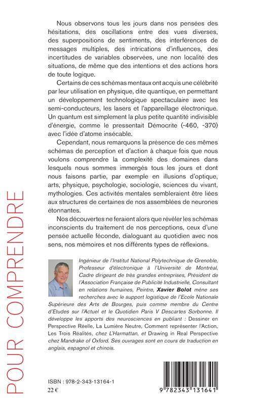 Nous observons dans nos pensées des hésitations, des oscillations entre des vues diverses, des superpositions de sentiments, des intrications d'influences, des incertitudes de variables observées, de même que des intentions et des actions hors de toute logique. Ces schémas mentaux sont connus grâce à la physique quantique. Ils sont également là quand nous voulons comprendre la complexité des domaines dans lesquels nous sommes immergés, par exemple en illusions d'optique, arts, physique, etc., qui semblent liés aux structures neuronales. Nos découvertes révéleraient les schémas inconscients du traitement de nos perceptions.