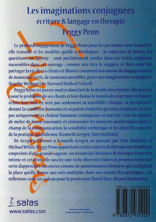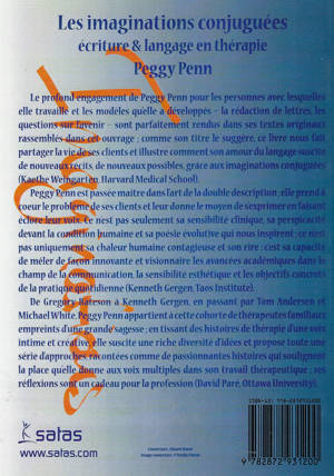 Le profond engagement de Peggy Penn pour les personnes avec lesquelles elle travaille et les modèles qu'elle a développés - la rédaction de lettres, les questions sur l'avenir - sont parfaitement rendus dans ses textes originaux rassemblés dans cet ouvrage ; comme son titre le suggère, ce livre nous fait partager la vie de ses clients et illustre comment son amour du langage suscite de nouveaux récits, de nouveaux possibles, grâce aux imaginations conjuguées (Kaethe Weingarten, Harvard Medical School). Peggy Penn est passée maître dans l'art de la double description ;elle prend à coeur le problème de ses clients et leur donne le moyen de s'exprimer en faisant éclore leur voix. Ce n'est pas seulement sa sensibilité clinique, sa perspicacité devant la condition humaine et sa poésie évolutive qui nous inspirent ; ce n'est pas uniquement sa chaleur humaine contagieuse et son rire : c'est sa capacité de mêler de façon innovante et visionnaire les avancées académiques dans le champ de la communication, la sensibilité esthétique et les objectifs concrets de la pratique quotidienne (Kenneth Gergen, Taos Institute). De Gregory Bateson à Kenneth Gergen, en passant par Tom Andersen et Michael White, Peggy Penn appartient à cette cohorte de thérapeutes familiaux empreints d'une grande sagesse ; en tissant des histoires de thérapie d'une voix intime et créative, elle suscite une riche diversité d'idées et propose toute une série d'approches, racontées comme de passionnantes histoires qui soulignent la place qu'elle donne aux voix multiples dans son travail thérapeutique ; ses réflexions sont un cadeau pour la profession (David Paré, Ottawa University).