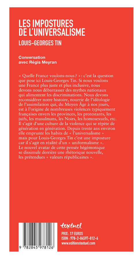 Si nous voulons une France juste et inclusive, il faut nous débarrasser du mythe national qui alimente le racisme et l'homophobie. Louis-Georges Tin revisite ici l'histoire de la France sous le jour de la violence imposée aux minorités ethniques, sexuelles, régionales ou encore religieuses. Pour lui, l'universalisme est une imposture car c'est en réalité un "uniformalisme". Loin d'être un pamphlet, ce livre lumineux démontre l'intérêt pour tous de prendre en compte les exigences d'inclusion et de diversité.