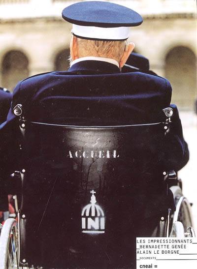 Présente le travail effectué par les deux artistes autour et avec les pensionnaires et le personnel de l'Institution nationale des Invalides. L'ensemble a fait l'objet d'une exposition au CNEAI et au Musée de l'armée en 2004.