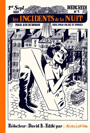 La série Les Incidents de la nuit rassemble la plupart des thèmes obsessionels de David B. tout en l'incluant lui-même comme personnage principal, au point qu’il y meure même… Nul doute que la position de l’Auteur sur la couverture de ce troisième Tome ait quelque chose à voir avec le Dieu Enn des précédents épisodes. À Suivre…