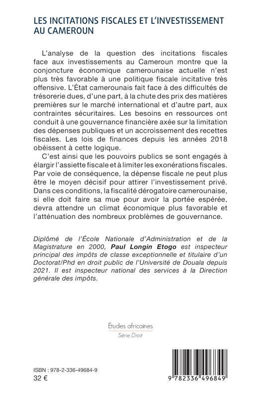 L'analyse de la question des incitations fiscales face aux investissements au Cameroun montre que la conjoncture économique camerounaise actuelle n'est plus très favorable à une politique fiscale incitative très offensive. L'État camerounais fait face à des difficultés de trésorerie dues, d'une part, à la chute des prix des matières premières sur le marché international et, d'autre part, aux contraintes sécuritaires. Les besoins en ressources ont conduit à une gouvernance financière axée sur la limitation des dépenses publiques et un accroissement des recettes fiscales. La loi des finances pour l'année 2018 obéit à cette logique. C'est ainsi que les pouvoirs publics se sont engagés à élargir l'assiette fiscale et à limiter les exonérations fiscales. Par voie de conséquence, la dépense fiscale ne peut plus être le moyen décisif pour attirer l'investissement privé. Dans ces conditions, la fiscalité dérogatoire camerounaise, si elle doit faire sa mue pour avoir la portée espérée, ce n'est pas pour les prochaines années. Il faudra, en attendant un climat économique plus favorable, régler les nombreux problèmes de gouvernance.