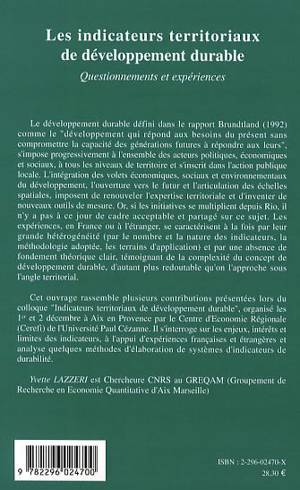 Le développement durable s'impose progressivement à l'ensemble des acteurs politiques, économiques et sociaux, à tous les niveaux du territoire et s'inscrit dans l'action publique locale. L'intégration des volets économiques, sociaux et environnementaux du développement, l'ouverture vers le futur et l'articulation des échelles spatiales, imposent de renouveler l'expertise territoriale et d'inventer de nouveaux outils de mesure. Or si les initiatives se multiplient, il n'y a pas à ce jour de cadre acceptable et partagé à ce sujet en France ou à l'étranger.