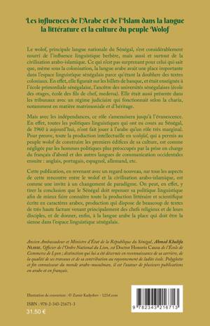 Le wolof, principale langue nationale du Sénégal, s'est considérablement nourri de l'influence linguistique berbère, mais aussi et surtout de la civilisation arabo-islamique. Mais avec les indépendances, le rôle de la langue arabe s'amenuisera jusqu'à l'évanescence. Cette publication, en revenant avec un regard nouveau, sur tous les aspects de cette rencontre entre le wolof et la civilisation arabo-islamique, est comme une invite à un changement de paradigme. On peut, en effet, y tirer la conclusion que le Sénégal doit repenser sa politique linguistique afin de mieux faire connaître toute la production littéraire et scientifique écrite en caractères arabes et de donner, enfin, à la langue arabe la place qui doit être la sienne dans l'espace linguistique sénégalais.