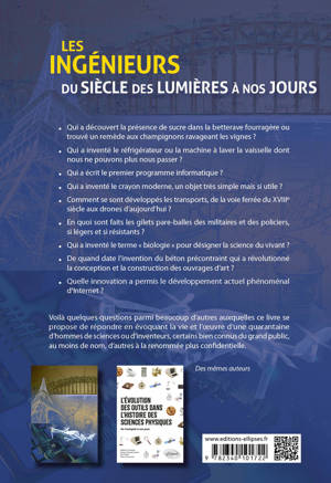 Voilà quelques questions parmi beaucoup d’autres auxquelles ce livre se propose de répondre en évoquant la vie et l’œuvre d’une quarantaine d’hommes de sciences ou d’inventeurs, certains bien connus du grand public, au moins de nom, d’autres à la renommée plus confidentielle.
