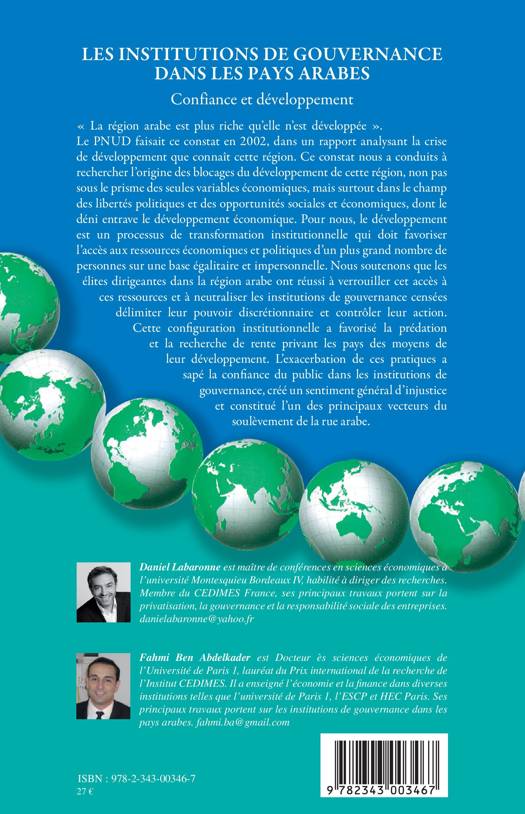 Quelle est l'origine des blocages du développement dans la région arabe ? Le développement est un processus de transformation institutionnelle qui doit favoriser l'accès aux ressources économiques et politiques du plus grand nombre. Or les élites dirigeantes de cette région ont verrouillé l'accès à ces ressources et neutralisé les institutions de gouvernance censées contrôler leur action. Un sentiment général d'injustice a fini par se créer, principal vecteur du soulèvement de la rue arabe.