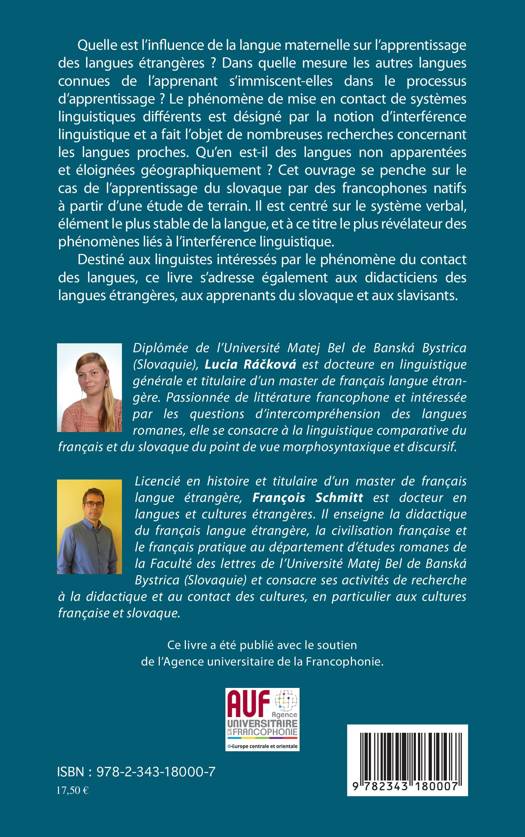 Quelle est l'influence de la langue maternelle sur l'apprentissage des langues étrangères ? Centré sur l'apprentissage du slovaque par des francophones natifs à partir d'une étude de terrain, cet ouvrage se destine aussi bien aux linguistes qu'aux didacticiens des langues étrangères, apprenants du slovaque et slavistants.
