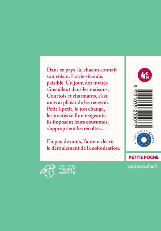 Dans ce pays-là, chacun connaît son voisin. Un jour, des invités arrivent, charmants. Mais petit à petit, le ton change : ils se font exigeants, décident de changer les cultures, gardent les récoltes...
