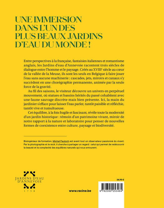 Entre perspectives à la française, fantaisies italiennes et romantisme anglais, les Jardins d'eau d'Annevoie racontent trois siècles de dialogue entre l'homme et le paysage. Créés au XVIIIe siècle au cœur de la vallée de la Meuse, ils sont les seuls en Belgique à faire jouer l'eau sans aucune machinerie : cascades, jets, miroirs et canaux s'y succèdent en une chorégraphie permanente, animée par la seule force de la gravité.