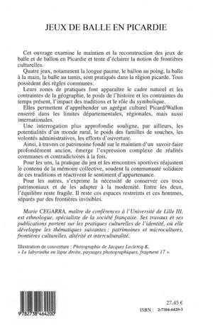 Cet ouvrage examine le maintien et la reconstruction des jeux de balle et de ballon (la longue paume, le ballon au poing, la balle à la main, la balle au tamis) dans la région picarde et tente d'éclairer la notion de frontières culturelles.