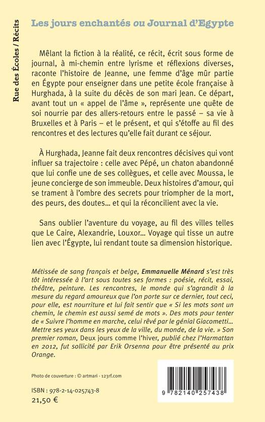Mêlant la fiction à la réalité, ce récit, écrit sous forme de journal, à mi-chemin entre lyrisme et réflexions diverses, raconte l'histoire de Jeanne, une femme d'âge mûr partie en Égypte pour enseigner dans une petite école française à Hurghada, à la suite du décès de son mari Jean. Ce départ, avant tout un « appel de l'âme », représente une quête de soi nourrie par des allers-retours entre le passé - sa vie à Bruxelles et à Paris - et le présent, et qui s'étoffe au fil des rencontres et des lectures qu'elle fait durant ce séjour. À Hurghada, Jeanne fait deux rencontres décisives qui vont influer sa trajectoire : celle avec Pépé, un chaton abandonné que lui confie une de ses collègues, et celle avec Moussa, le jeune concierge de son immeuble. Deux histoires d'amour, qui se trament à l'ombre des secrets pour triompher de la mort, des peurs, des doutes... et qui la réconcilient avec la vie. Sans oublier l'aventure du voyage, au fil des villes telles que Le Caire, Alexandrie, Louxor... Voyage qui tisse un autre lien avec l'Égypte, lui rendant toute sa dimension historique.