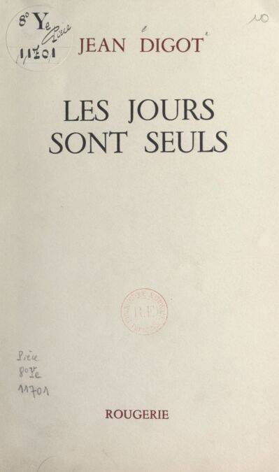 « Signe de vie (à René Lacote). Vers quel refuge, maintenant, vais-je pouvoir me dériver quand mes bras nus sont sans courage de tant de force abandonnée. Je me résigne au lourd déclin des étés morts dans la tourmente ; sur chaque mur de mes prisons s’inscrit tragique un chant d’espoir, gardien jaloux des sépultures où nul ne vient se recueillir. J’ai ramené des vieux sommets le secret vierge des naissances, et je m’applique avec amour au long travail des existences qui ne possèdent qu’un moyen pour maîtriser le sort des ombres. » 12 poèmes de Jean Digot (1912-1995), dédicacés ; plusieurs ont été créés en URSS.