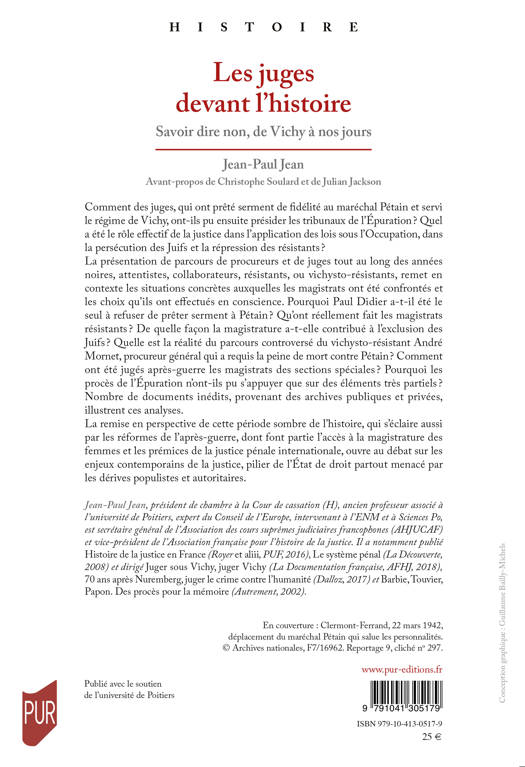 Comment des juges, qui ont prêté serment de fidélité au maréchal Pétain et servi le régime de Vichy, ont-ils pu ensuite présider les tribunaux de l’Épuration ? Quel a été le rôle effectif de la justice dans l’application des lois sous l’Occupation, dans la persécution des Juifs et la répression des résistants ? La présentation de parcours de procureurs et de juges tout au long des années noires, attentistes, collaborateurs, résistants, ou vichysto-résistants, remet en contexte les situations concrètes auxquelles les magistrats ont été confrontés et les choix qu’ils ont effectués en conscience. Pourquoi Paul Didier a-t-il été le seul à refuser de prêter serment à Pétain ? Qu’ont réellement fait les magistrats résistants ? De quelle façon la magistrature a-t-elle contribué à l’exclusion des Juifs ? Quelle est la réalité du parcours controversé du vichysto-résistant André Mornet, procureur général qui a requis la peine de mort contre Pétain ? Comment ont été jugés après-guerre les magistrats des sections spéciales ? Pourquoi les procès de l’Épuration n’ont-ils pu s’appuyer que sur des éléments très partiels ? Nombre de documents inédits, provenant des archives publiques et privées, illustrent ces analyses. La remise en perspective de cette période sombre de l’histoire, qui s’éclaire aussi par les réformes de l’après-guerre, dont font partie l’accès à la magistrature des femmes et les prémices de la justice pénale internationale, ouvre au débat sur les enjeux contemporains de la justice, pilier de l’État de droit partout menacé par les dérives populistes et autoritaires.