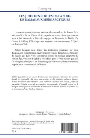 Les communautés juives ont joué un rôle essentiel sur les Routes de la soie jusqu'à la fin du 12ème siècle, en plein optimum climatique, comme nous le fait découvrir le Livre des voyages de Benjamin de Tudèle. De Damas à Kaifeng (Chine) que sont devenues ces communautés ? Qu'en est-il aujourd'hui ? Robert Lanquar nous donne des indications précieuses sur cette diaspora, son extraordinaire créativité et son pouvoir de résilience. Benjamin de Tudèle, que Jules Verne considérait comme le meilleur géographe du Moyen-Âge, voyait en Bagdad la ville idéale pour y vivre en tant que juif. Ce voyageur délivre par là un fort message de convivance, du vivre ensemble en paix entre communautés différentes.