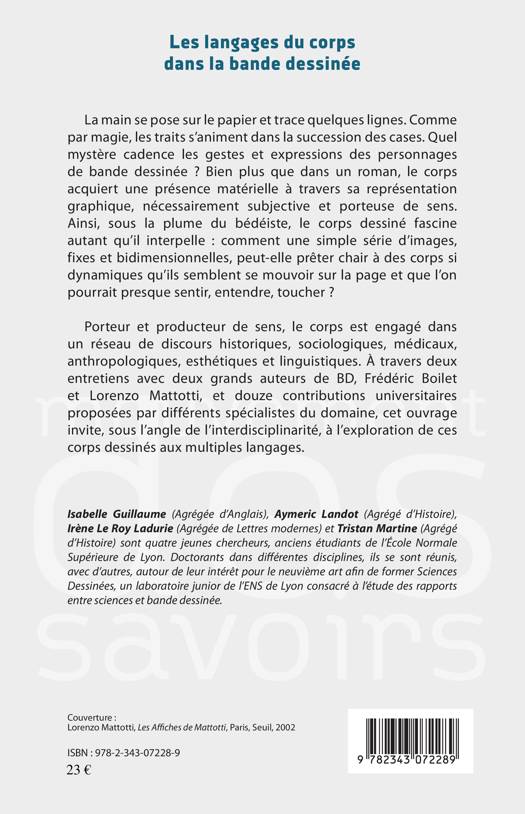 Quel mystère cadence les gestes et expressions des personnages de bande dessinée ? Comment une simple série d'images, fixes et bidimensionnelles, peut-elle prêter chair à des corps si dynamiques qu'ils semblent se mouvoir sur la page et que l'on pourrait presque sentir, entendre, toucher ? A travers deux entretiens avec deux grands auteurs de BD, Frédéric Boilet et Lorenzo Mattotti, et douze contributions universitaires, cet ouvrage, invite sous l'angle de l'interdisciplinarité, à l'exploration de ces corps dessinés aux multiples langages.