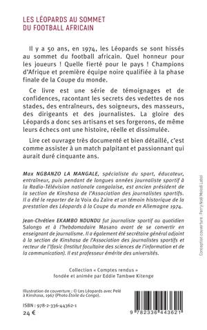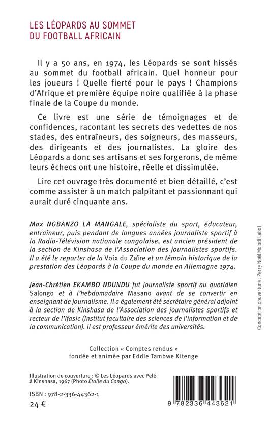 Il y a 50 ans, en 1974, les Léopards se sont hissés au sommet du football africain. Quel honneur pour les joueurs ! Quelle fierté pour le pays ! Champions d'Afrique et première équipe noire qualifiée à la phase finale de la Coupe du monde. Ce livre est une série de témoignages et de confidences, racontant les secrets des vedettes de nos stades, des entraîneurs, des soigneurs, des masseurs, des dirigeants et des journalistes. La gloire des Léopards a donc ses artisans et ses forgerons, de même leurs échecs ont une histoire, réelle et dissimulée. Lire cet ouvrage très documenté et bien détaillé, c'est comme assister à un match palpitant et passionnant qui aurait duré cinquante ans.