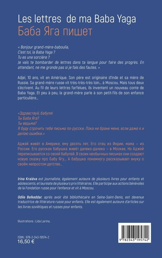 Adjeï, 10 ans, vit en Amérique. Son père est originaire d'Inde et sa mère de Russie. Sa grand-mère russe vit très-très-très loin... à Moscou. Mais tous deux s'écrivent. Au fil de leurs lettres farfelues, ils inventent un nouveau conte de Baba Yaga. Et peu à peu, la grand-mère parle à son petit-fils de son enfance particulière...