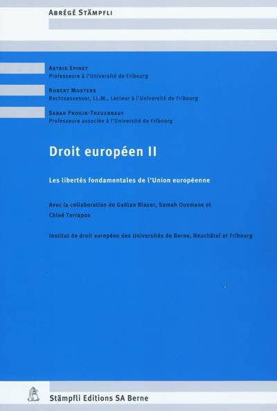 Ce manuel traite du principe de non-discrimination et du régime des libertés fondamentales de l' Union européenne (libre circulation des marchandises, libre circulation des travailleurs, liberté d' établissement, libre prestation de services, libre circulation des capitaux et des paiements). Sont également abordées des questions dogmatiques des libertés fondamentales et la thématique du rapprochement des ordres juridiques nationaux. Un excursus se consacre à l'accord sur la libre circulation des personnes entre la Suisse et l' Union européenne. Cet ouvrage, conçu comme support de cours, s' adresse avant tout aux étudiants et étudiantes dans le but de leur faciliter la compréhension des cours et leur assurer une meilleure préparation aux examens. Dans le domaine des libertés fondamentales, la jurisprudence de la Cour de justice de l' Union européenne revêt une grande importance qui rend la connaissance des principaux arrêts indispensable. C' est la raison pour laquelle ce manuel contient de nombreux extraits d'arrêts, qui visent à illustrer la matière et permettre au lecteur/ à la lectrice de développer un regard critique face au droit de l' Union. Les modifications apportées par le Traité de Lisbonne sont déjà prises en compte.