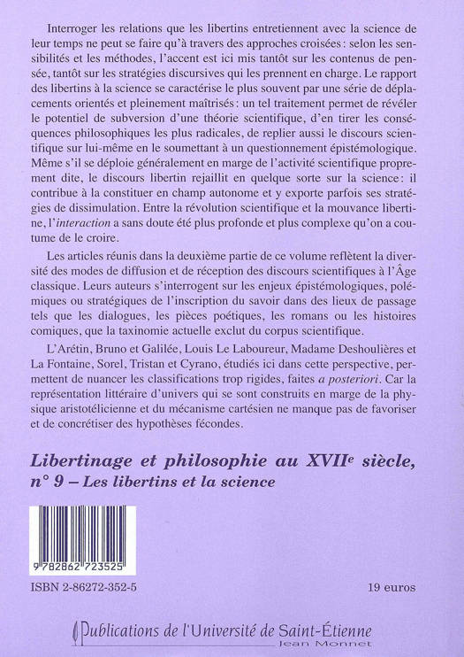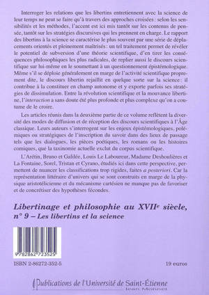 Les articles réunis ici s'interrogent sur les relations que les libertins entretiennent avec la science de leur temps. Ils reflètent, dans un second temps, la diversité des modes de diffusion et de réception des discours scientifiques à l'âge classique.