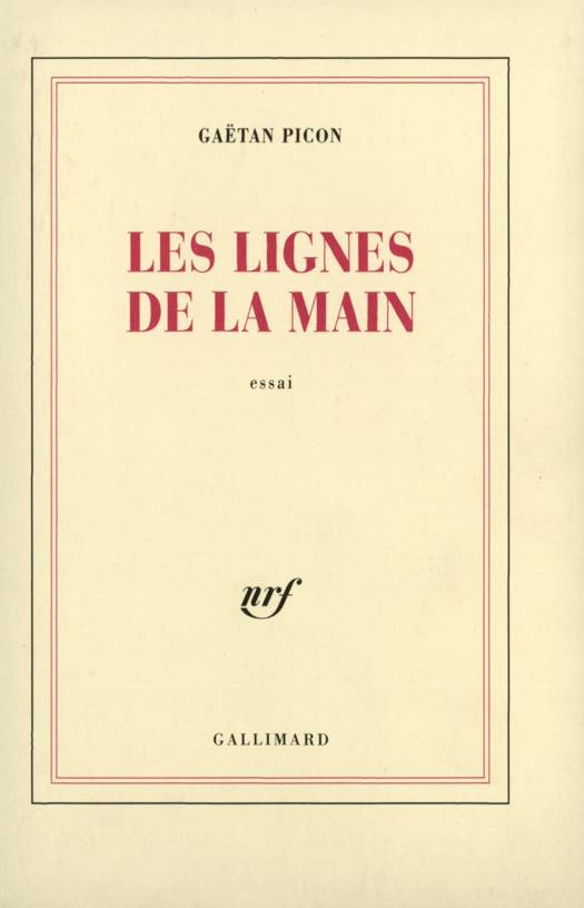 "Nées de la préférence ou de l'occasion, ces pages - sans en avoir eu l'intention - finissent par composer un paysage de la peinture au XXᵉ siècle, dans l'éventail de quelques exemples majeurs. En même temps la question est posée de l'immédiate actualité, de l'avenir. Qu'en est-il de l'art d'aujourd'hui ? L'étude qui ouvre le livre (Le Sujet de l'Art) en indique le souci constant. Mais les pages qui concernent les artistes les plus anciens (Ingres, Géricault, Hugo dessinateur, Van Gogh) rappellent que la présence des oeuvres passées est moins un fait de culture qu'un phénomène de vie. Comme Baudelaire, nous nous tenons entre une modernité désirée, épiée - et une ineffaçable révélation. J'ai appelé ce livre Les Lignes de la main, car la peinture, elle aussi, est une écriture. On écrit toujours de quelque chose, mais de quelque chose que l'on ne voit qu'en écrivant. La séduction de la critique d'art vient du fait que l'écrivain voit cette fois avant d'écrire le monde sur lequel il va écrire. Monde déjà formé, filtré mais innommé. Il reste à trouver les mots. Je n'ai pas cherché les mots qui, au-delà de ce que l'on voit, prétendent rendre compte de l'objet dont nous n'aurions que l'illusion. Je n'ai pas voulu non plus décrire inutilement ce que l'on voit. Plutôt ai-je tenté de m'assurer des choses que je voyais, les remerciant d'être là, le retenant. Comme s'il s'agissait de créatures aimées : fragiles et indéchiffrables." Gaëtan Picon.