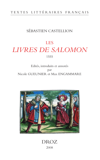 Il paraît enfin acquis que Sébastien Castellion fut un traducteur sagace et talentueux de la Bible en latin – la Biblia de 1551, après son essai sur le Pentateuque de 1546, le Moses Latinus – comme en français – la Bible nouvellement translatée à Bâle, chez Johann Herwagen, en 1555.,Après La Genèse qu’ils ont donnée en 2003 (TLF 553), deux des éditeurs de l’équipe initiale, n’ayant pu sans doute se dessaisir de la langue novatrice de Castellion, éditent aujourd’hui sa traduction des livres que la tradition attribue à Salomon (Proverbes, Ecclésiaste, Cantique des cantiques). Nicole Gueunier et Max Engammare rappellent l’histoire de l’agrégation de ces trois livres et examinent le contexte exégétique que la Réforme protestante leur a forgé. C’est ainsi que l’histoire de la traduction de ces derniers, celle du Cantique des cantiques en particulier, est rapportée au cadre éminemment polémique des controverses qui opposèrent Sébastien Castellion à Théodore de Bèze et à Jean Calvin. Par ailleurs, le travail de traduction auquel s’est livré Castellion pour le français est comparé à celui qu’avait nécessité son édition latine. Les outils critiques usuels – notes, bibliographie, glossaire – servent la langue de Sébastien Castellion et en définitive célèbrent sa belle singularité.