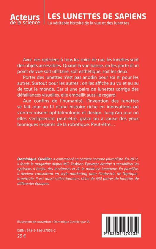 Avec des opticiens à tous les coins de rue, les lunettes sont des objets accessibles. Quand la vue baisse, on les porte d'un point de vue soit utilitaire, soit esthétique, soit les deux. Porter des lunettes n'est pas anodin pour soi ni pour les autres. Surtout pour les autres: on les affiche au vu et au su de tout le monde. Car si une paire de lunettes corrige des défaillances visuelles, elle embellit aussi le regard. Aux confins de l'humanité, l'invention des lunettes se fait jour au fil d'une histoire riche en innovations où s'entrecroisent ophtalmologie et design. Jusqu'au jour où elles s'éclipseront peut-être, grâce ou à cause des yeux bioniques inspirés de la robotique. Peut-être...