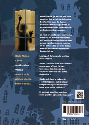 Dans ce livre, je ne vais pas vous raconter des histoires de hantise habituelles, avec de douces odeurs de tarte aux pommes et de mains invisibles qui caressent délicatement les cheveux. Je vous présente au contraire des histoires de hantise terrifiantes qui plongent des familles entières dans de profondes dépressions et les poussent à s’enfuir de leur maison en abandonnant toutes leurs affaires. La plupart du temps, le mystère reste irrésolu. À quoi, à quelle force mystérieuse avons-nous affaire ? À des fantômes, des démons, des créatures venues d’une autre dimension ? Quelle est donc la nature de ces intelligences qui rivalisent d’ingéniosité pour tourmenter leurs innocentes victimes ? Et surtout, question suprême : dans quel but agissent-elles ainsi ?