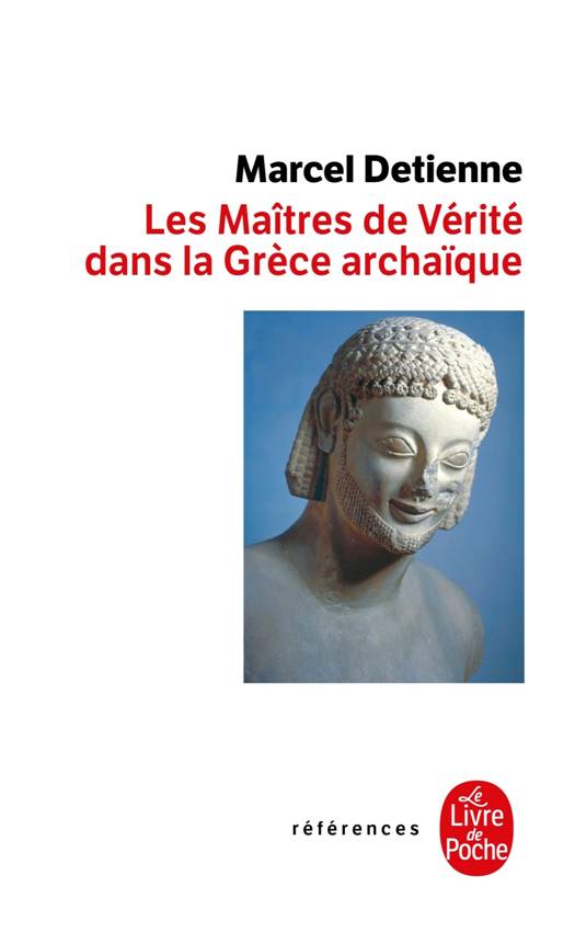 « Les Maîtres de vérité… sont trois types de personnages que leurs fonctions qualifient, dans le contexte social et culturel de la Grèce archaïque, comme détenteurs d’un privilège inséparable de leur rôle institutionnel. Ces trois personnages sont l’aède, le devin, le roi de justice ; leur commun privilège est de dispenser la « Vérité ». Du moins traduisons-nous ainsi le mot grec « Aléthéia » dont les valeurs, dans la pensée religieuse ancienne, ne débordent pas moins le cadre de notre concept du vrai que ne le fait, par exemple, le « Rta » des Indo-Iraniens : cette « vérité » qui n’est séparable ni de l’ordre rituel, ni de la prière, ni du droit, ni de la puissance cosmique assurant le retour régulier des aurores.