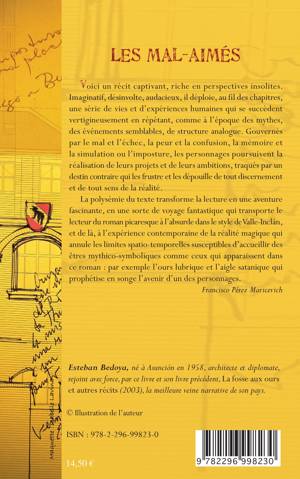Captivant, désinvolte, audacieux, ce récit déploie une série de vies et d'expériences humaines qui se succèdent vertigineusement en répétant, comme à l'époque des mythes, des événements semblables, de structure analogue. Les mal-aimés raconte le passé des personnages de la Fosse aux ours, publié en 2003. Cette oeuvre illustre un des traits de la postmodernité dans la littérature latino-américaine que constitue l'intertextualité et dans le cas d'Esteban Bedoya, l' auto-intertextualité.